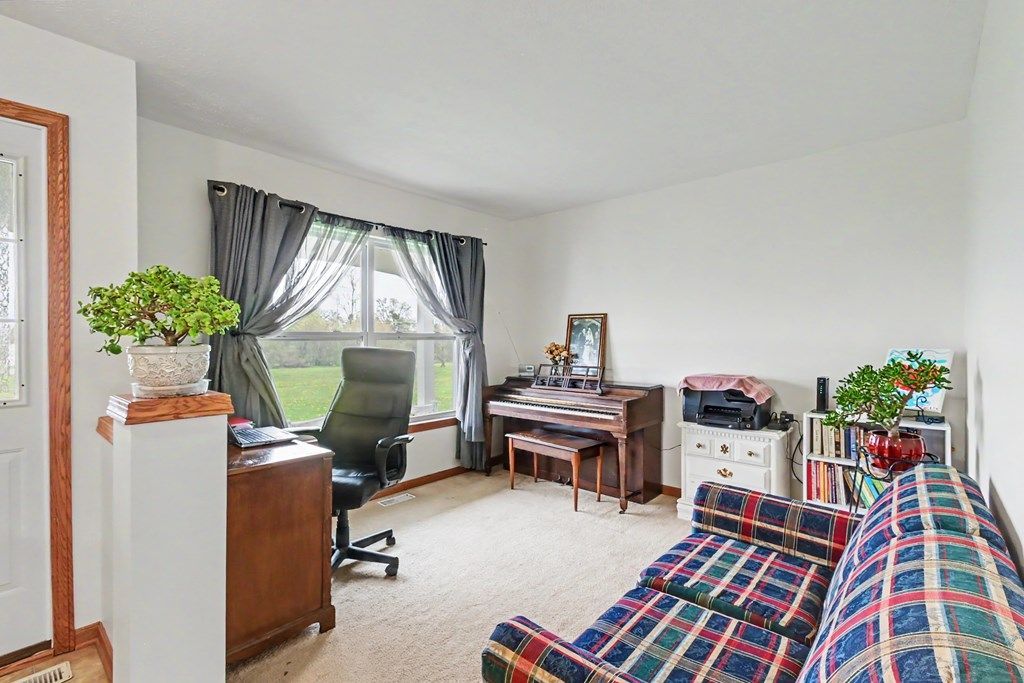 Surrounded by farmland, the views and peacefulness of this beautiful property can't be matched. Set on 15.8 acres, and with not just one but TWO primary bedrooms with attached baths, this versatile home features a new metal roof, new geothermal system, fresh paint and an open concept. Hear the clip clop of horses go by as you sit on your sprawling front porch and let nature unfold. Partial basement has TONS of great storage, 2 1/2 car attached garage offers space for tools or workshop and the layout of the home is fantastic, and would easily fit multi-generations. Call to see this beautiful property!